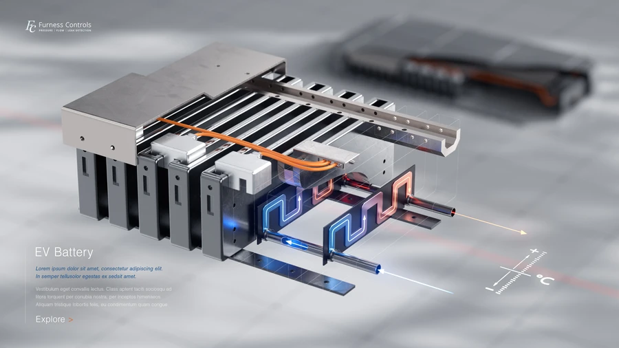 Las carcasas para baterías de vehículos eléctricos son a menudo conjuntos multipuerto complicados con muchos puntos potenciales de fallo, y generalmente contienen grandes volúmenes abiertos que complican las pruebas de fugas. Usando el FCO794, la carcasa puede probarse continuamente mientras se realizan ajustes en los sellos. Además, con un gran volumen aislado utilizado como fuente de presión, las pequeñas fugas en la carcasa se detectan fácilmente porque las caídas de presión se traducen en mayores movimientos de aire entre el volumen y las carcasas, amplificando la sensibilidad.